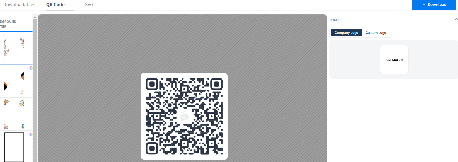 You can also just download the QR code without the design. If you need SVG format, click on SVG. Once you've selected, click on download.